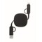 Einziehbares Ladekabel 60W. Gehäuse aus recyceltem ABS. Eingang: 2in1 Typ-C und Typ-A. Ausgang: Typ-C und Mikro-B (2 in 1 Pin). Kabellänge: 80 cm.