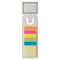 Lesezeichen versehen mit 15 selbstklebenden Memoblättern (pro Farbe/Format): 1 Block (44x40mm) und 5 selbstklebende Streifen (44x12mm) in verschiedenen Farben.